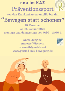 Diese acht zertifizierten Präventionsprogramme biete ich Ihnen mittwochs und freitags in Reinhausen an.